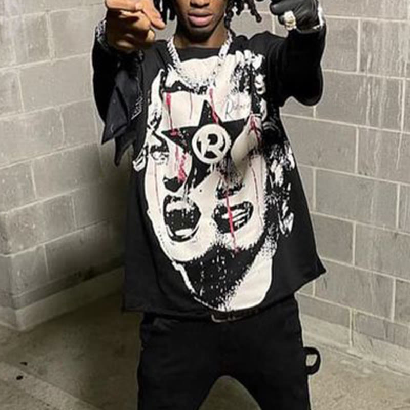 Street Style Vintage Revelation 12:7-9 War Angel Printed Acid Washed T-shirt