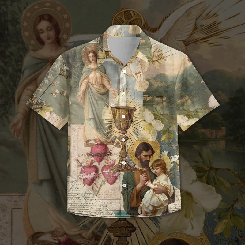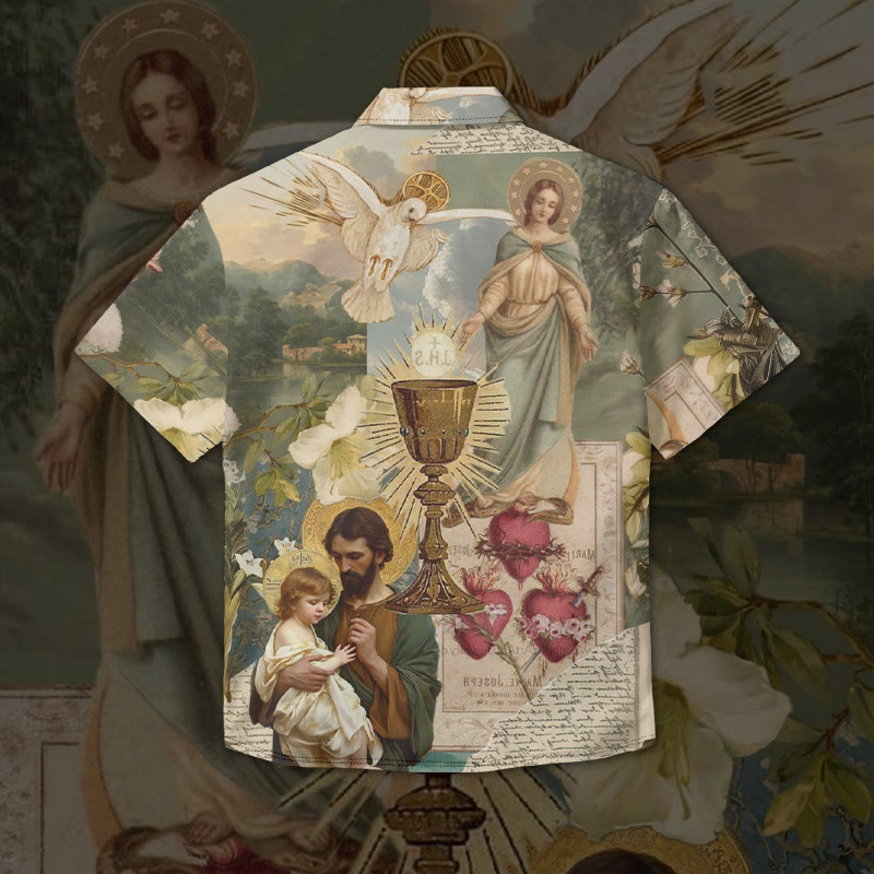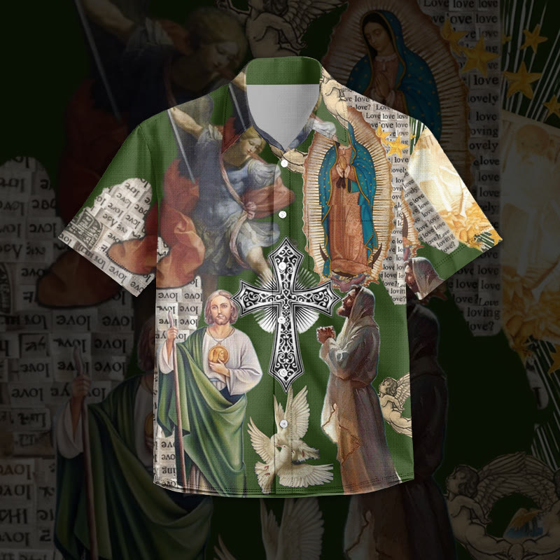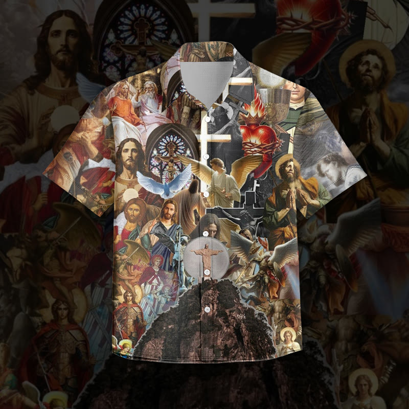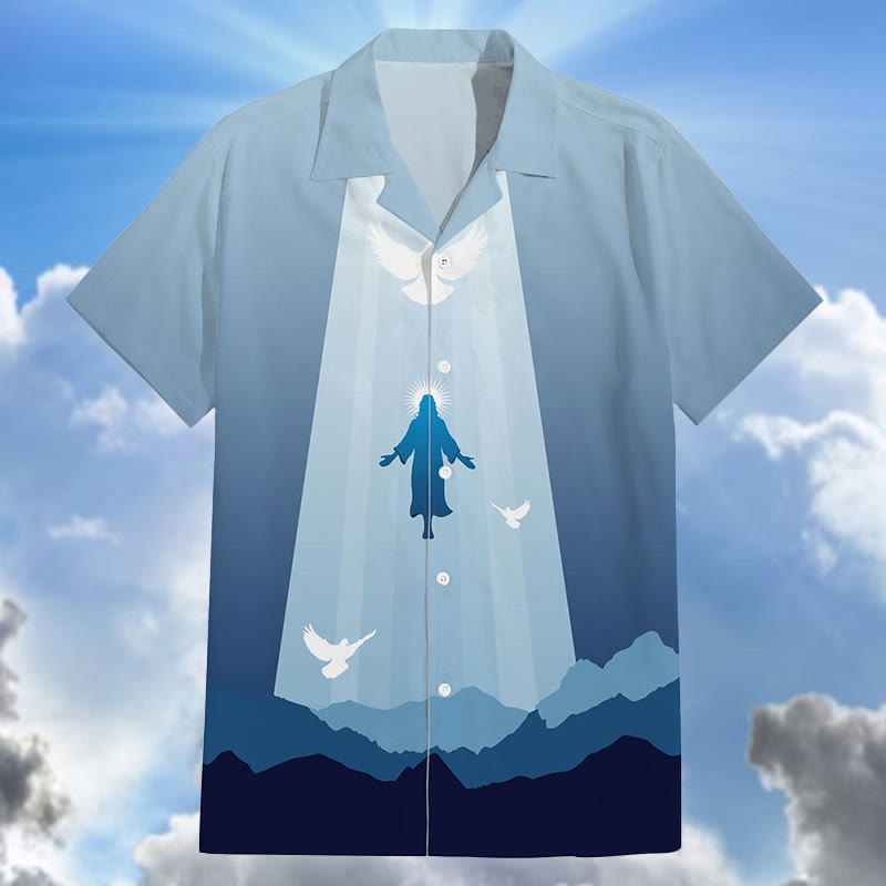 Ascension Of Jesus Print Short Sleeve Cuban Collar Shirt