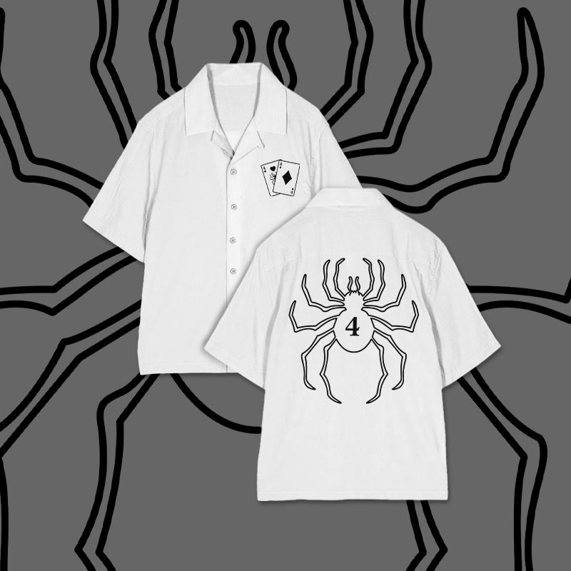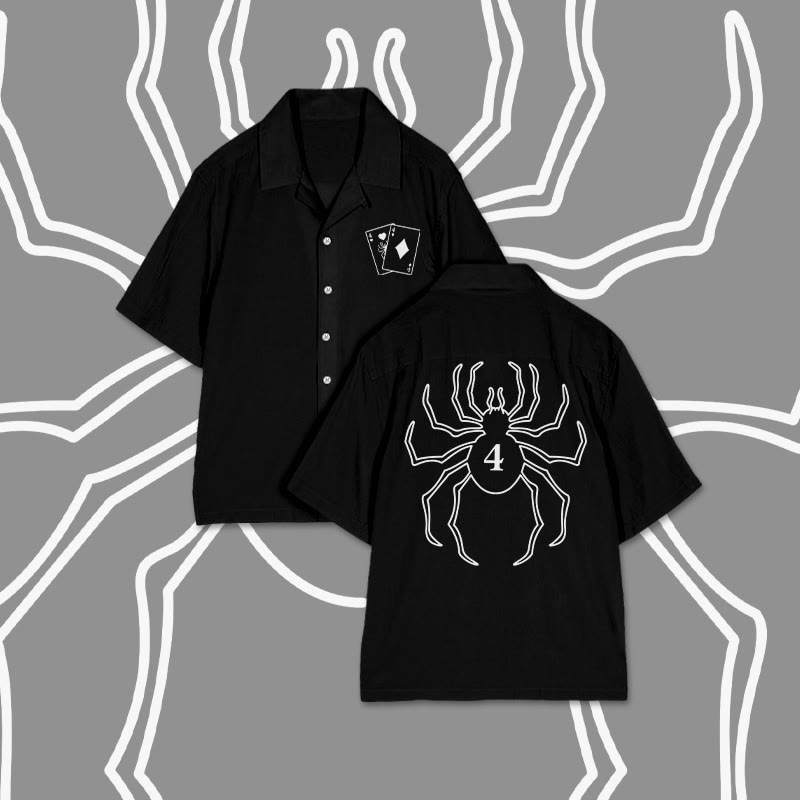 No. 4 Spider Print Camp-collar Shirt