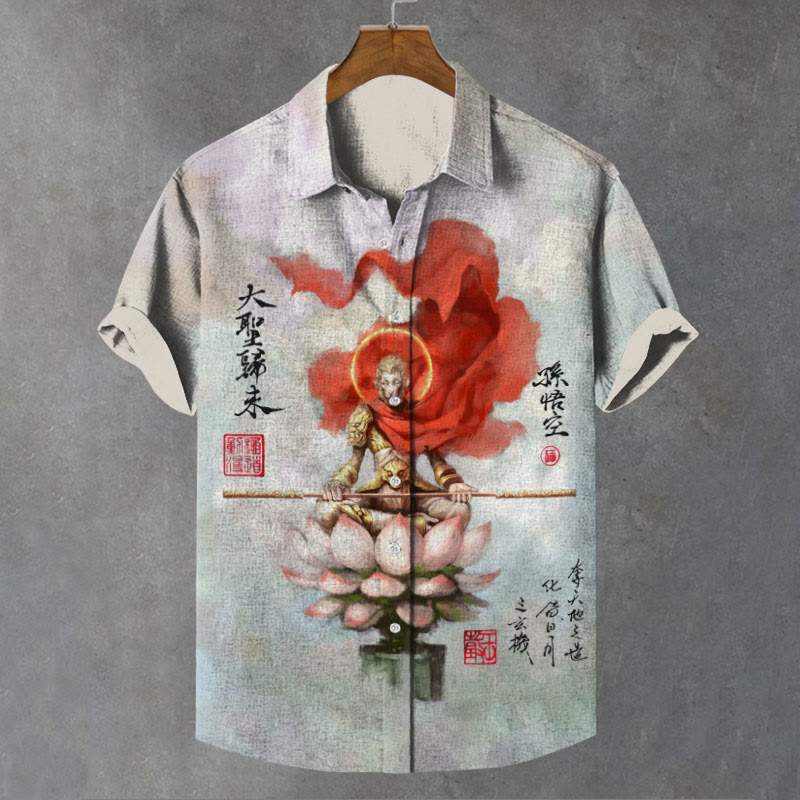 Vintage Black Myth Monkey King Returns Print Short Sleeve Shirt