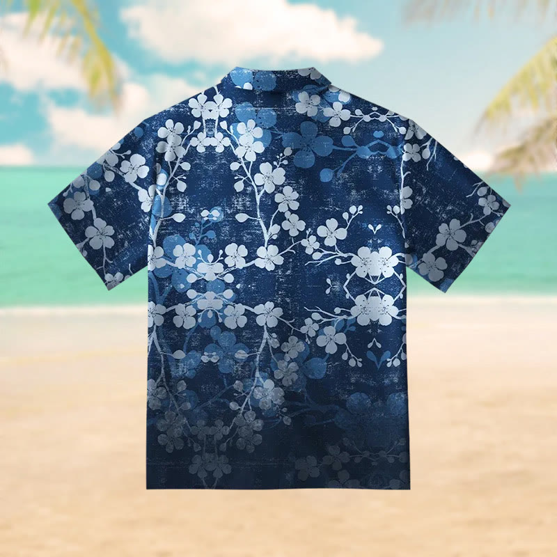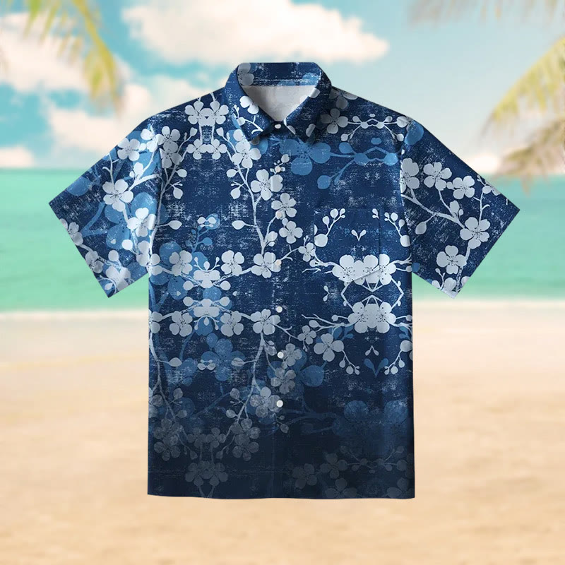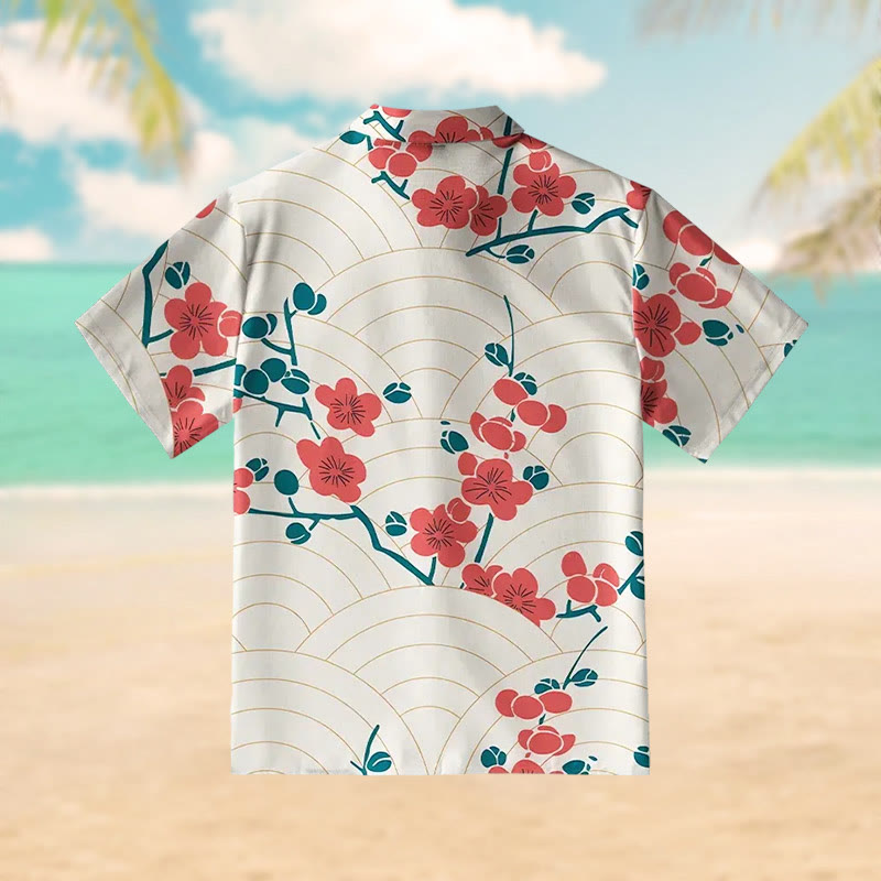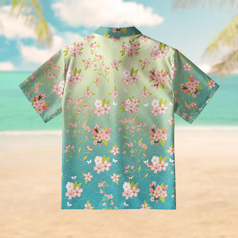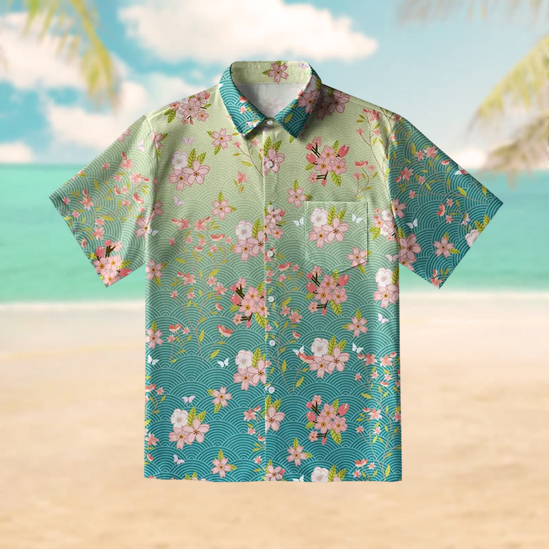 Sakura Blossom Waves Print Short Sleeve Shirt