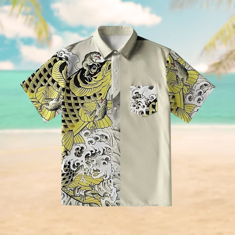 Funny Frog Riding Koi Print Short Sleeve Shirt