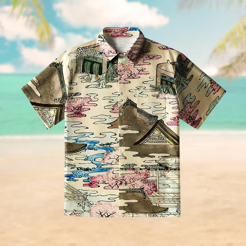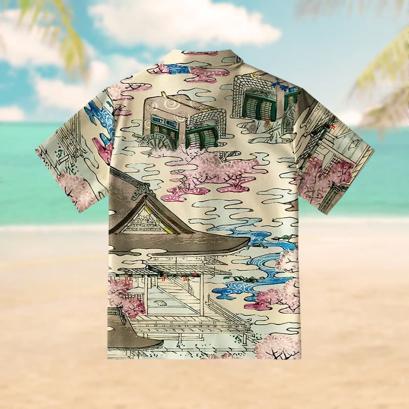 Japanese Courtyard Print Short Sleeve Shirt
