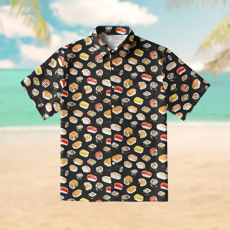 Delicious Sushi Print Short Sleeve Shirt