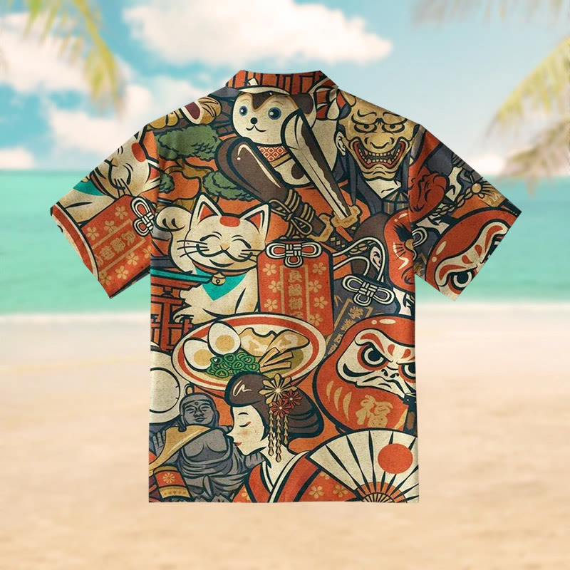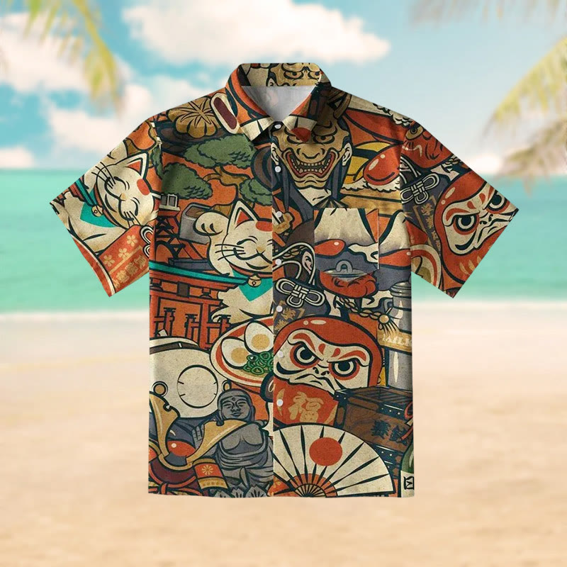 Japanese Traditional Elements Print Short Sleeve Shirt