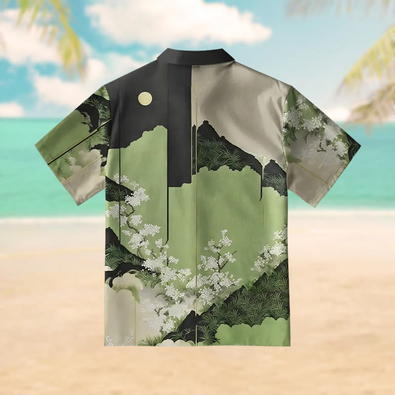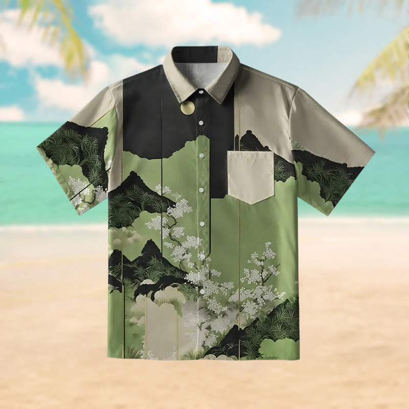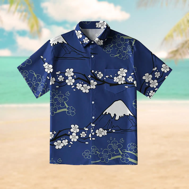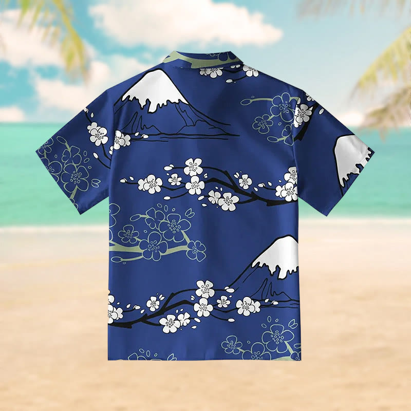 Mt. Fuji Blossoms Print Short Sleeve Shirt