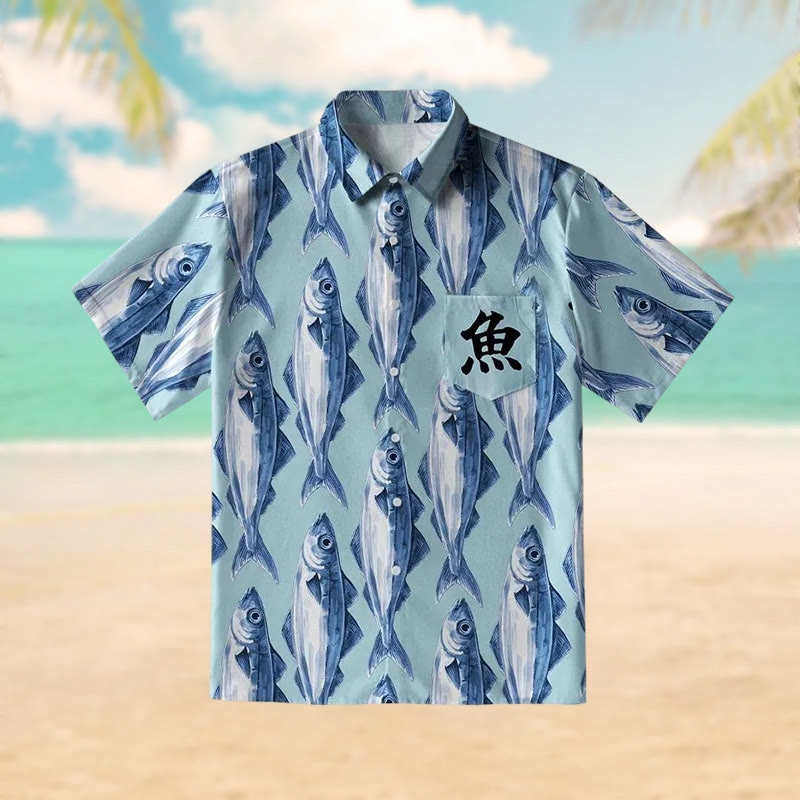 School Of Fish Print Short Sleeve Shirt