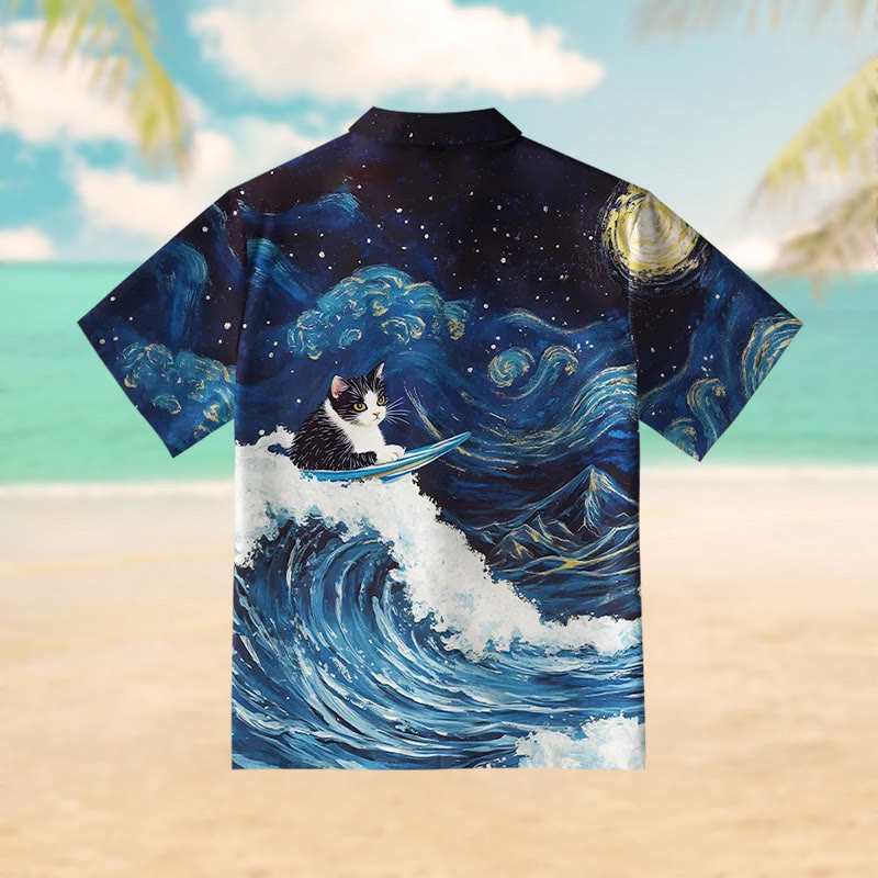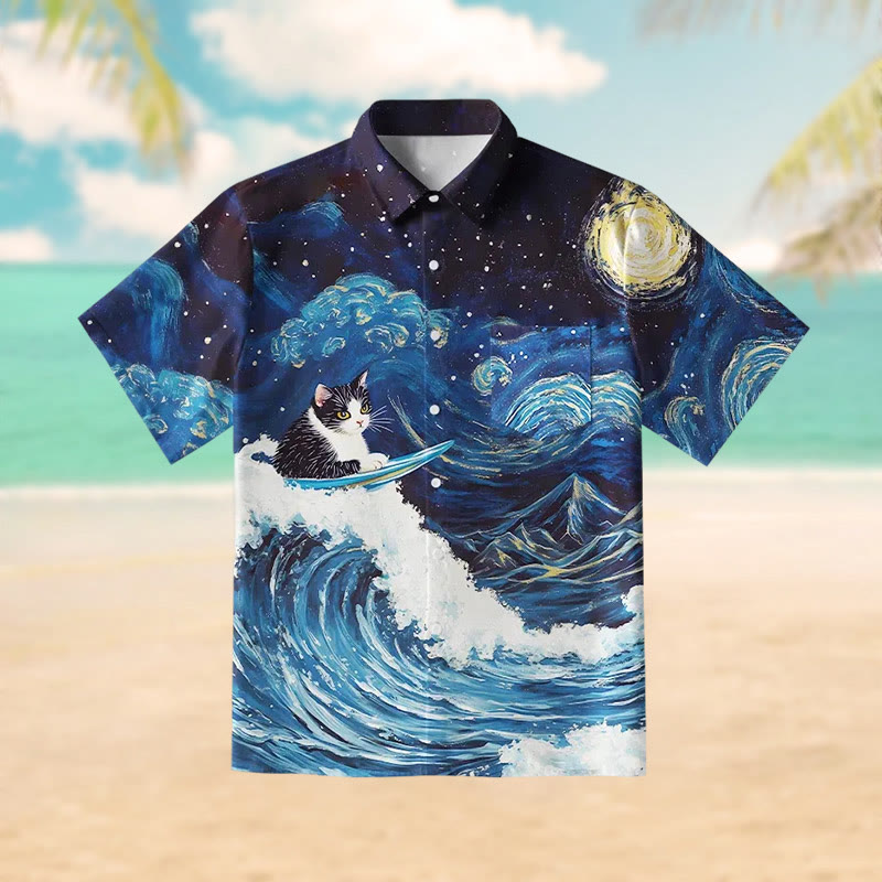 The Great Wave Off Cat Print Short Sleeve Shirt