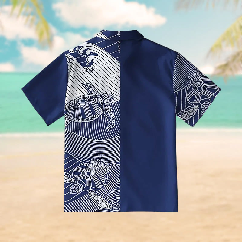 Turtles In The Ocean Print Short Sleeve Shirt