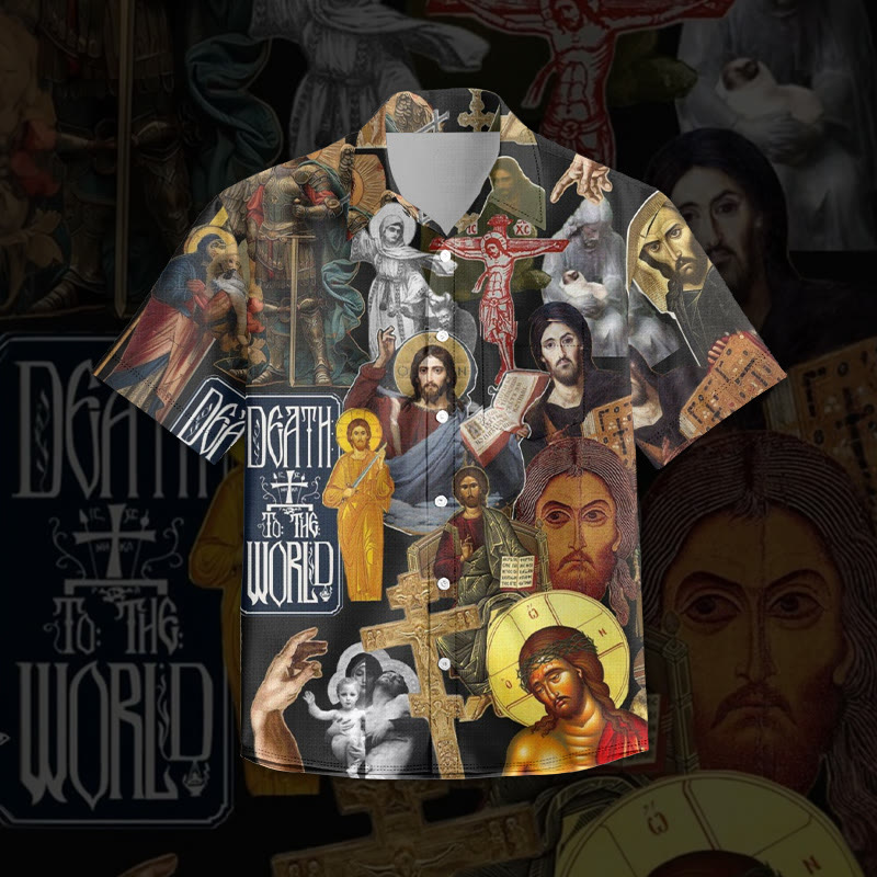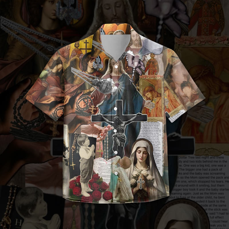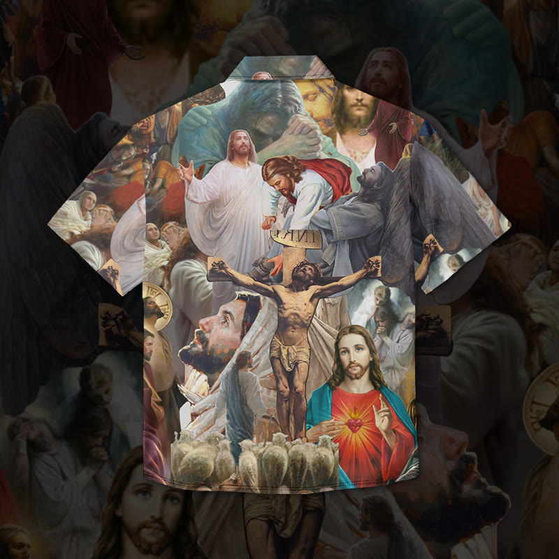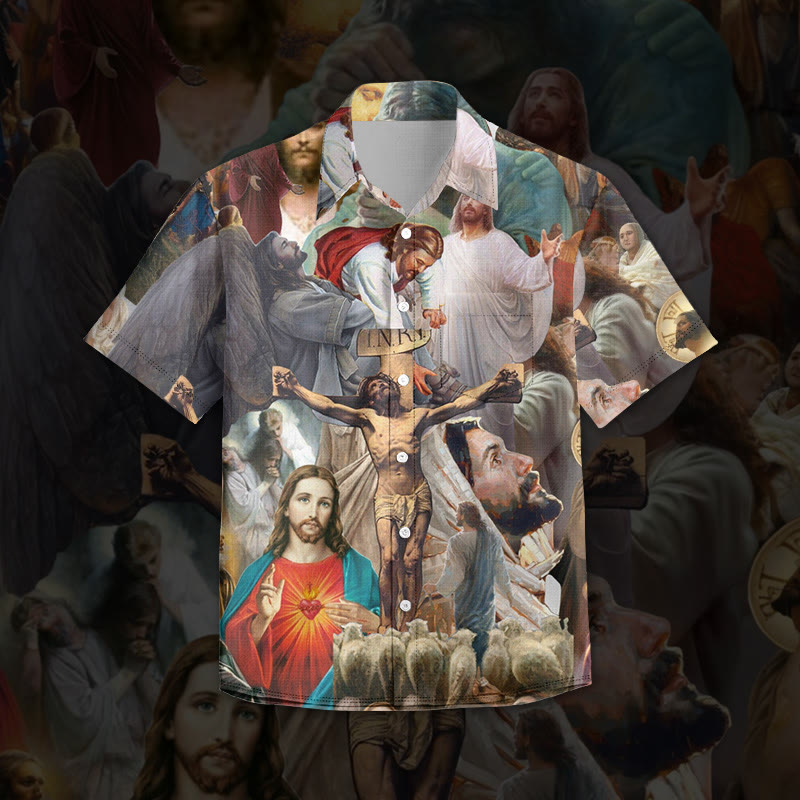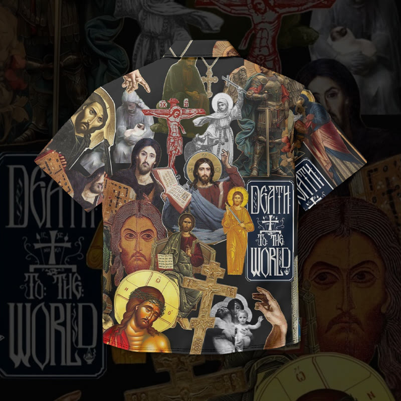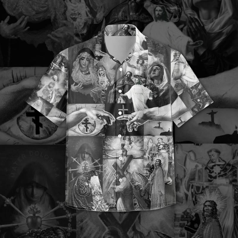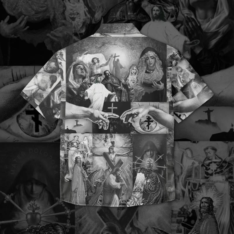 Crucified Jesus Print Short Sleeve Vintage Shirt