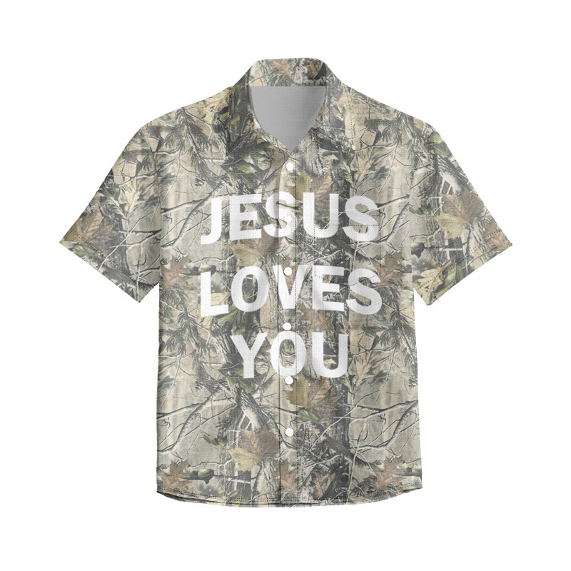 Unisex Jesus Loves You Dead Leaves Camouflage Print Short Sleeve Shirt