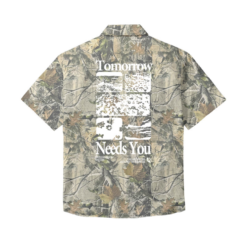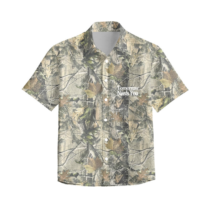 Unisex Tomorrow Needs You Dead Leaves Camouflage Print Short Sleeve Shirt