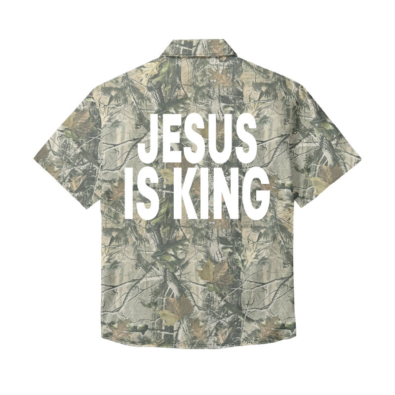 Unisex Jesus Is King Dead Leaves Camouflage Print Short Sleeve Shirt