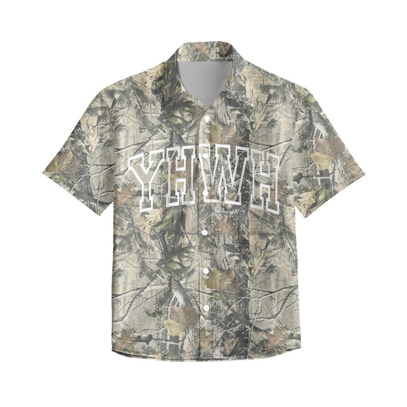 Unisex YHWH Dead Leaves Camouflage Print Short Sleeve Shirt