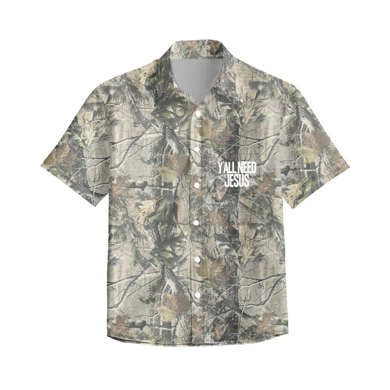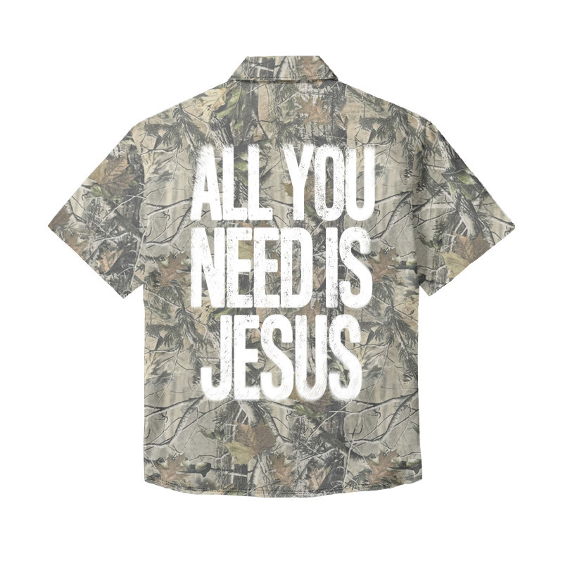 Unisex All You Need Is Jesus Dead Leaves Camouflage Print Short Sleeve Shirt