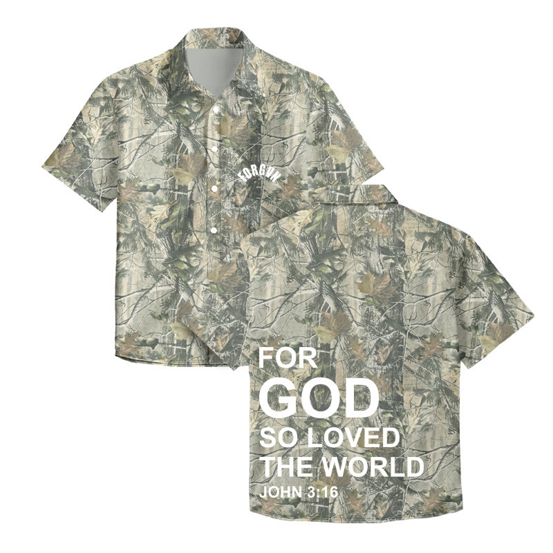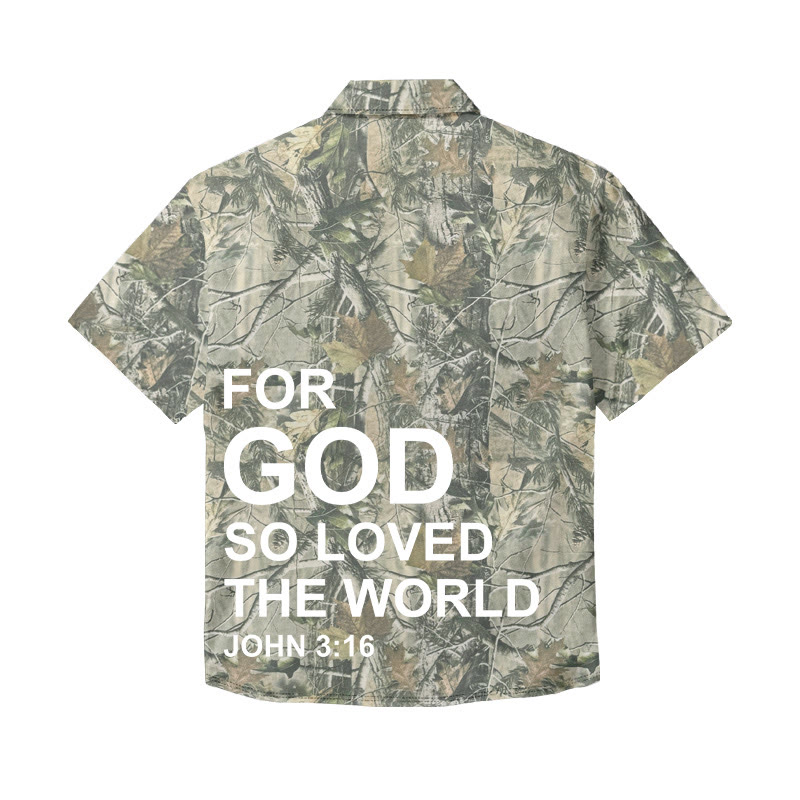 Unisex For God So Loved The World Dead Leaves Camouflage Print Short Sleeve Shirt