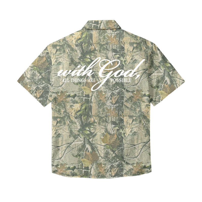 Unisex With God All Things Are Possible Dead Leaves Camouflage Print Short Sleeve Shirt