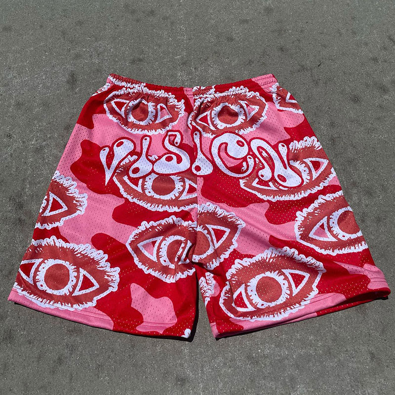 Unseen Vision Eyes Print Casual Mesh Shorts