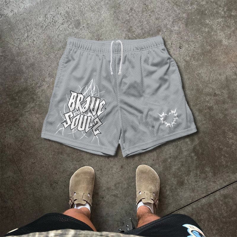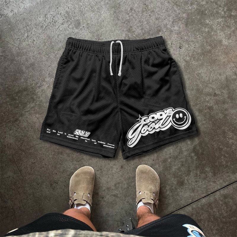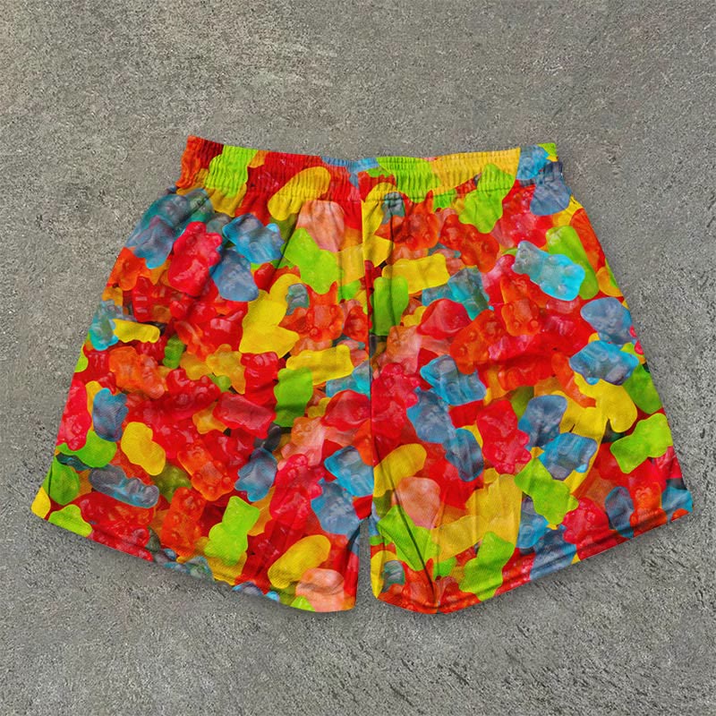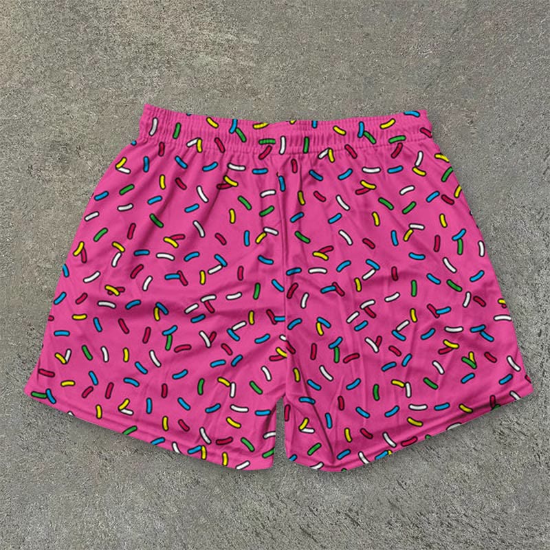 Cartoon Sprinkle Chill Print Mesh Shorts