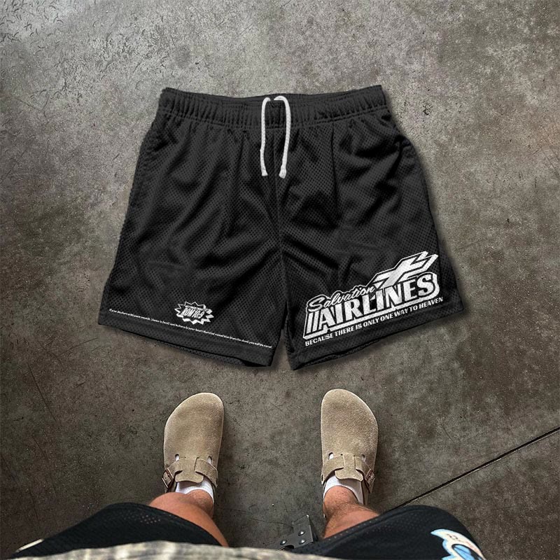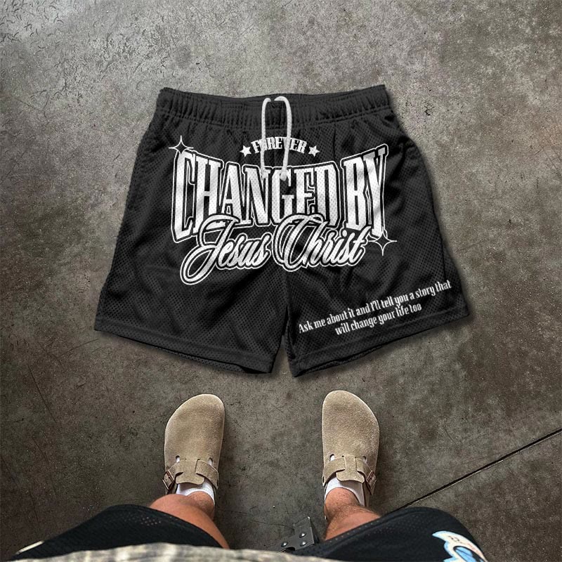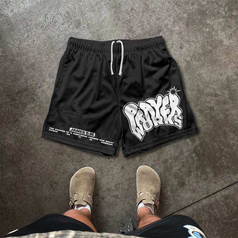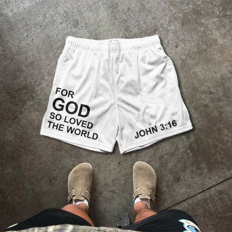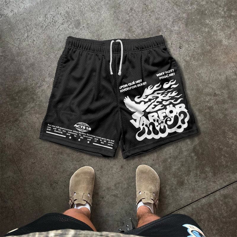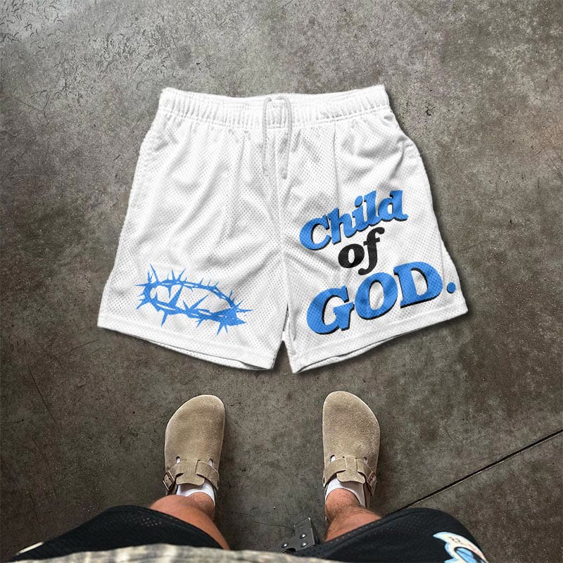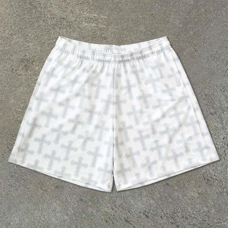 Jesus Nail Cross With Thorn Crown Print Mesh Shorts