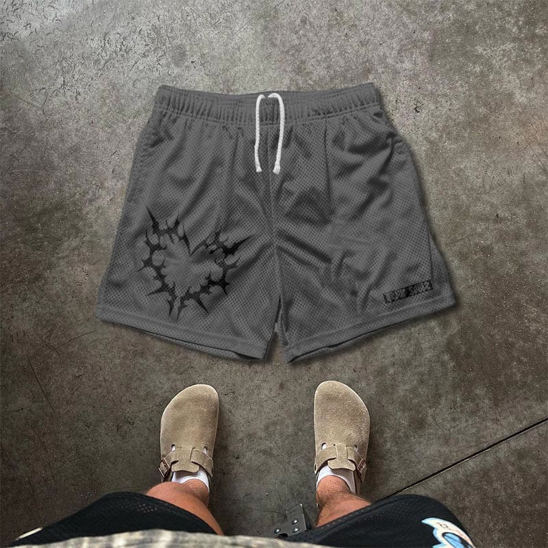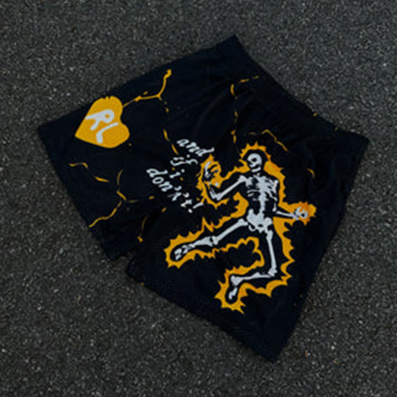 Street Style Lightning Skull Print Casual Mesh Shorts