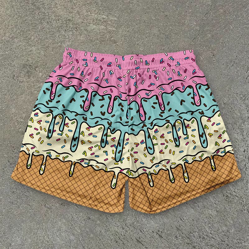 Summer Cool Color Block Ice Cream Print Casual Mesh Shorts
