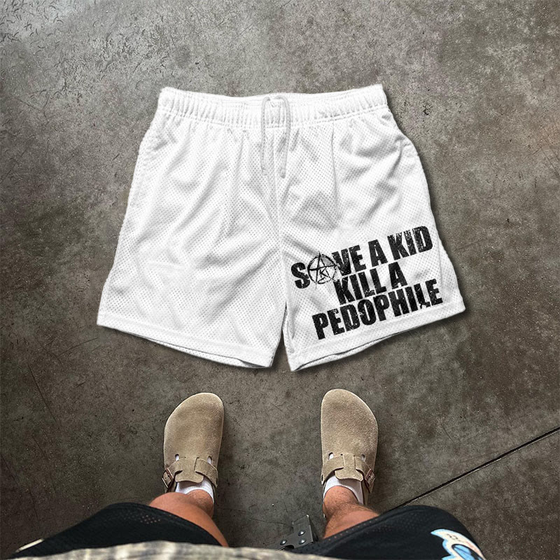 Save A Kid Kill A Pedophile Print Causal Mesh Shorts