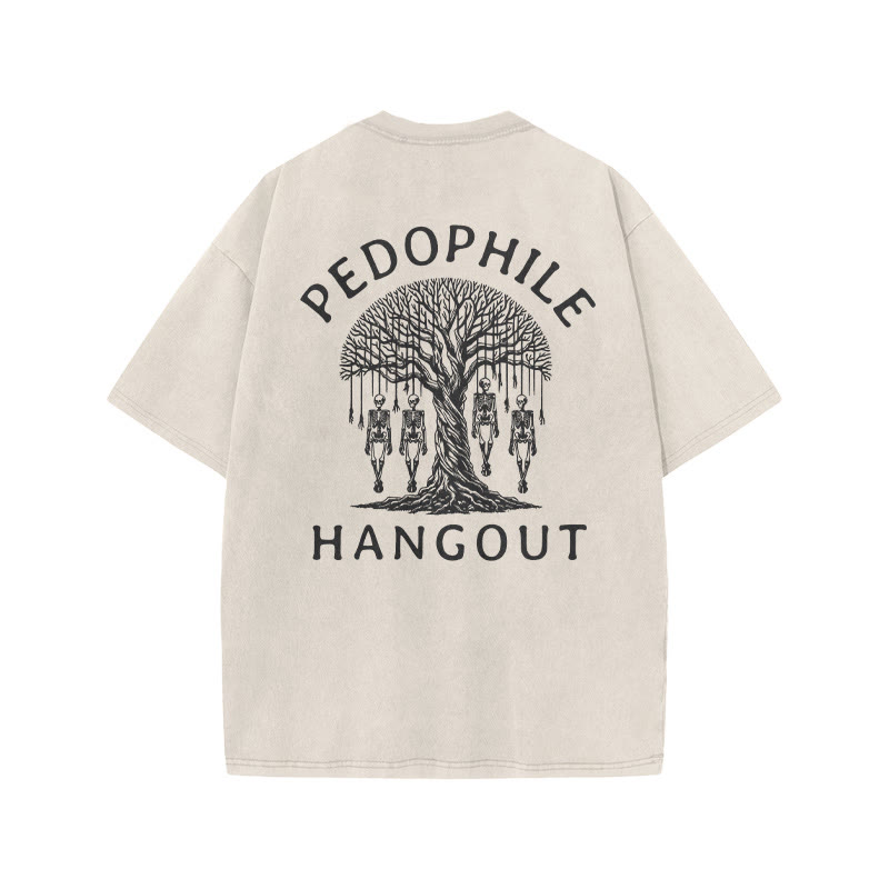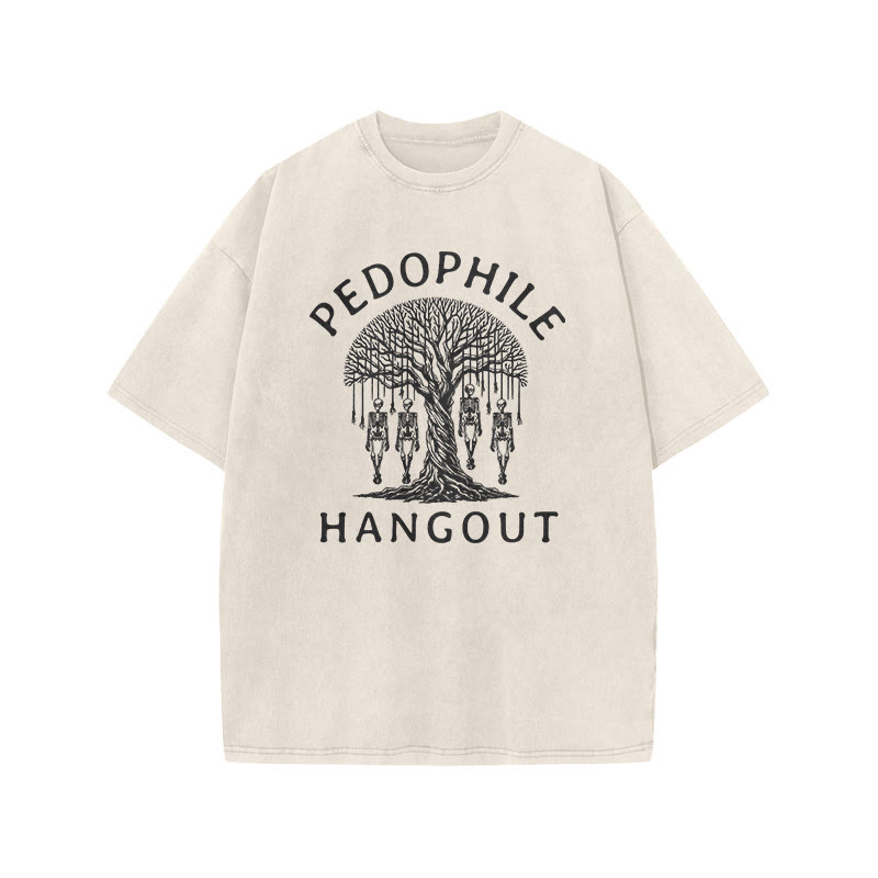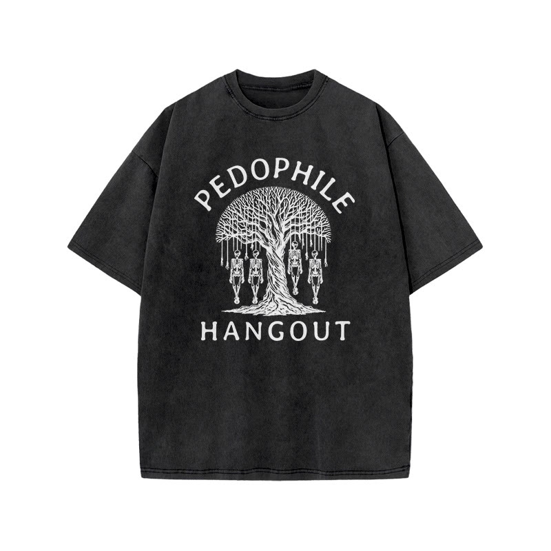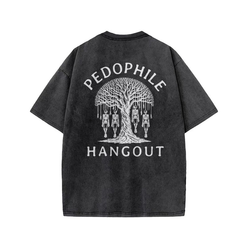 Unisex Pedophile Hangout Print Acid Washed Causal T-shirt