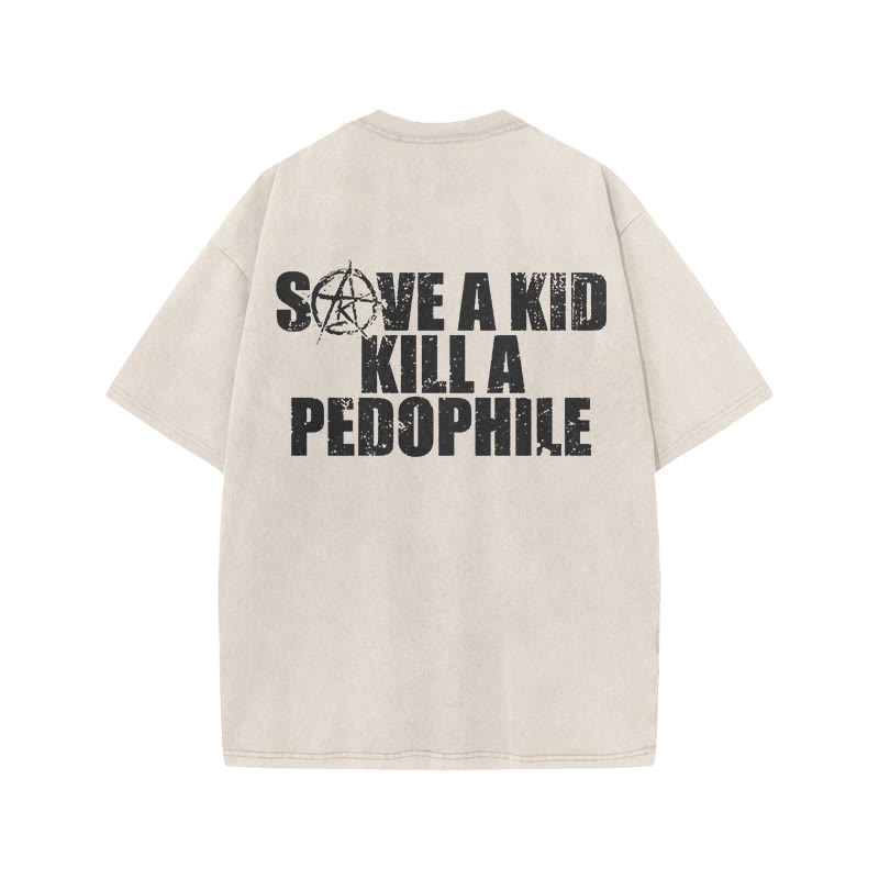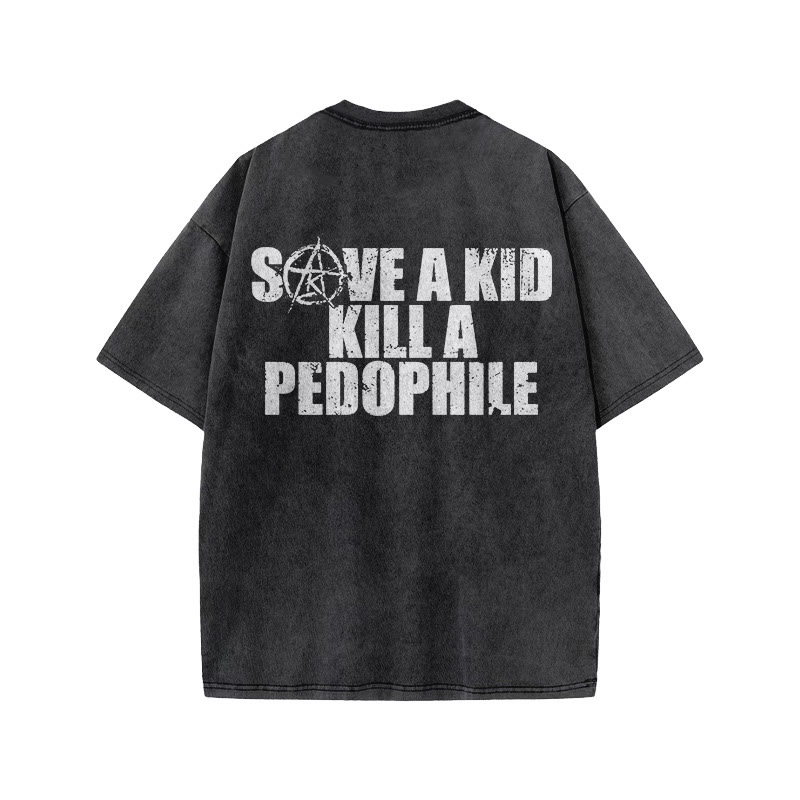 Unisex Save A Kid Kill A Pedophile Print Acid Washed T-shirt