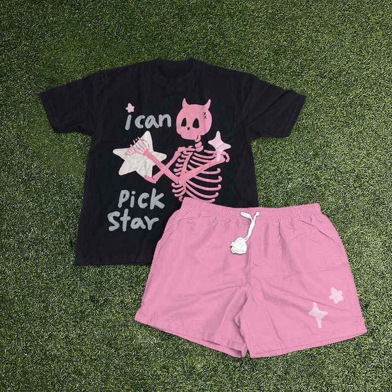I Can Pick Star Skull Print T-shirt Set
