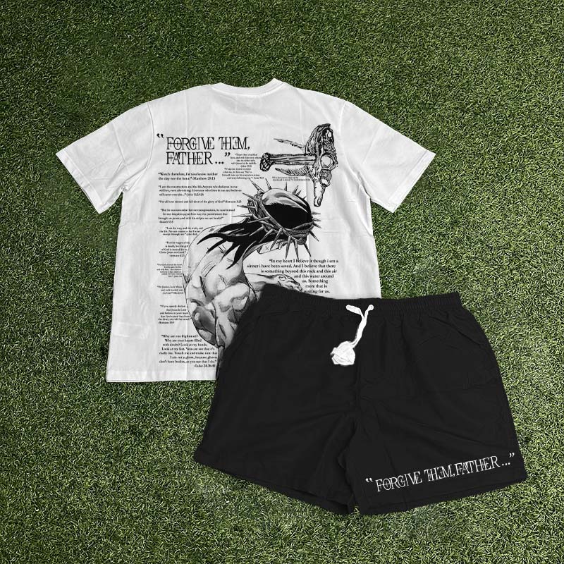 Forgive Them,Father Bible Verses Print T-shirt Set