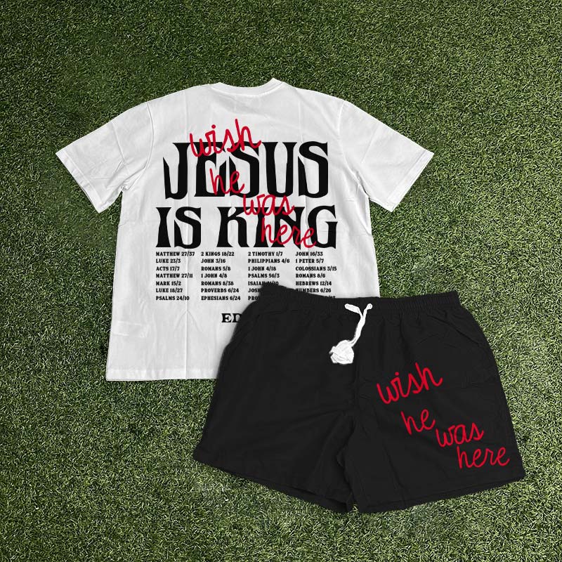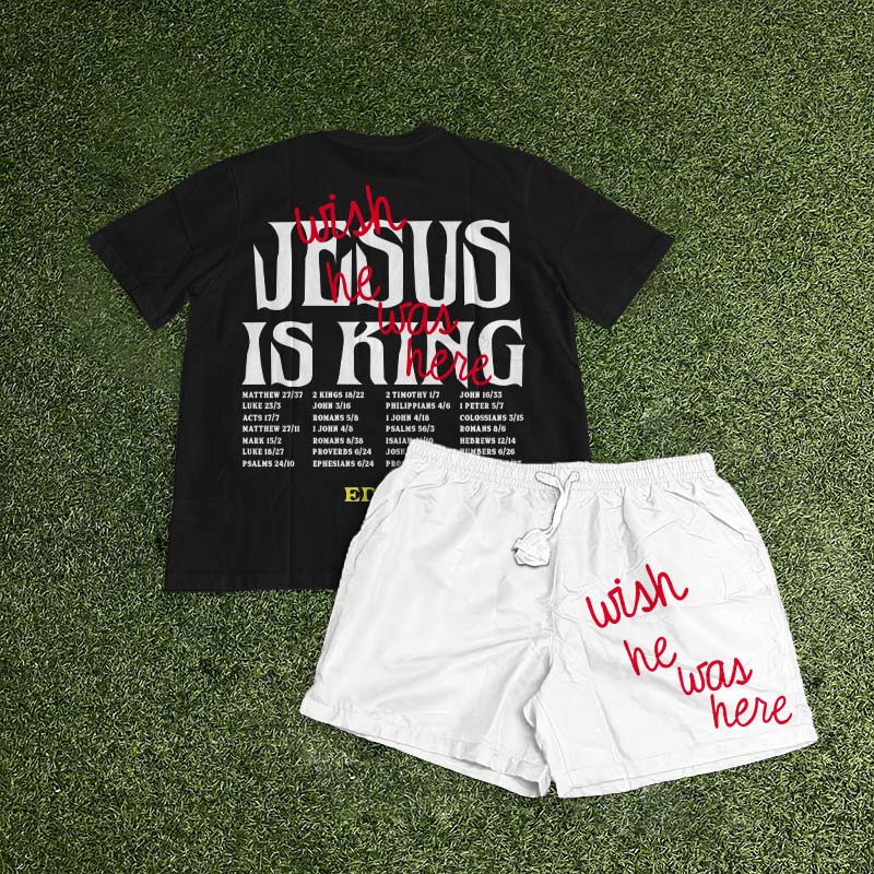 Jesus Is King Wish He Was Here Print T-shirt Set