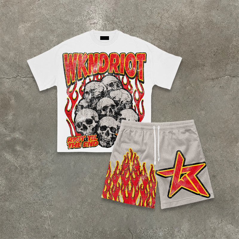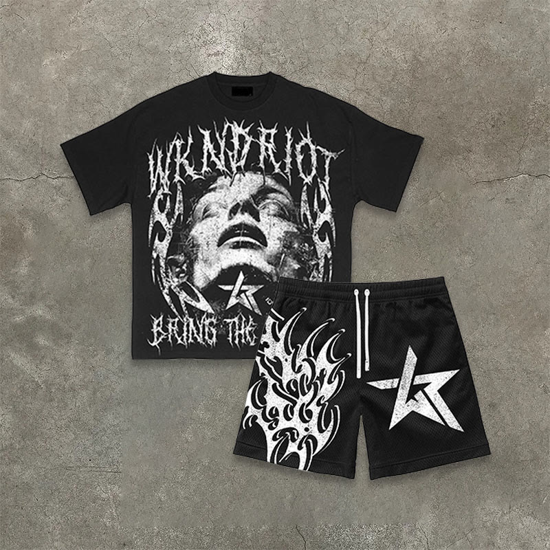 Street Style Riot Til The End Print T-shirt Set