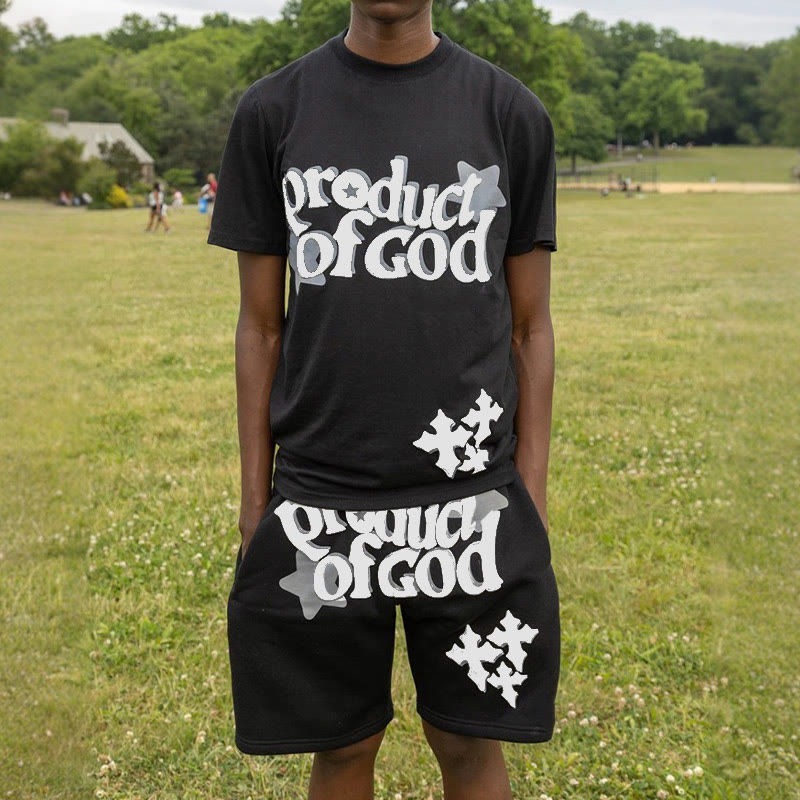 Product Of God Cross Print Short Sleeve T-shirt Set