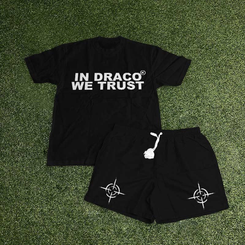 In Draco We Trust Print T-shirt Set