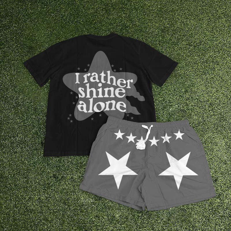 I Rather Shine Alone Print T-shirt Set