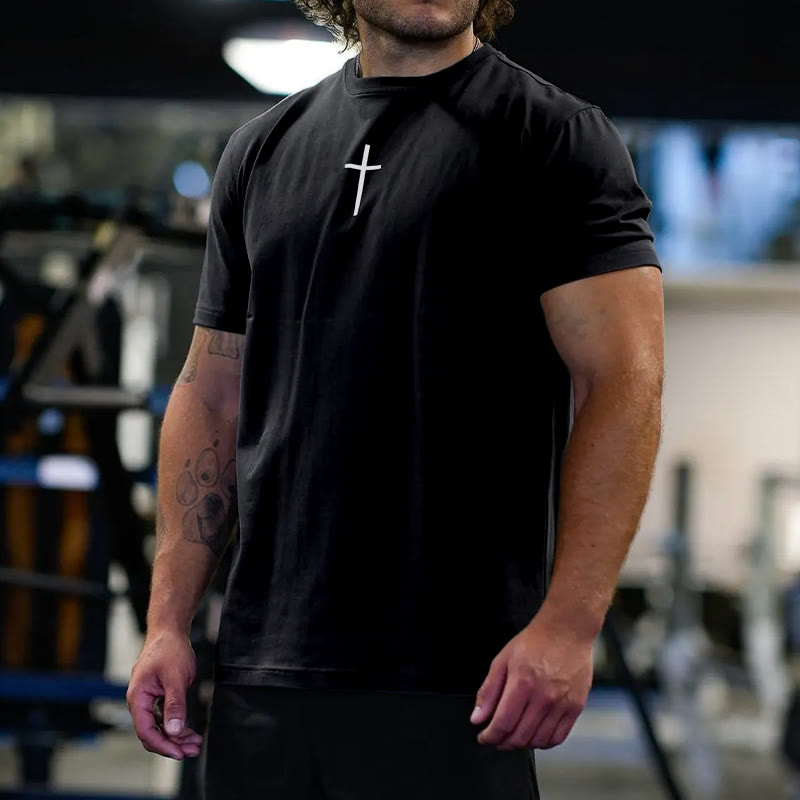 Faith Over Fear Color-block Cross Print T-shirt