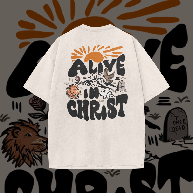 Alive In Christ Print Acid Washed Unisex T-shirt