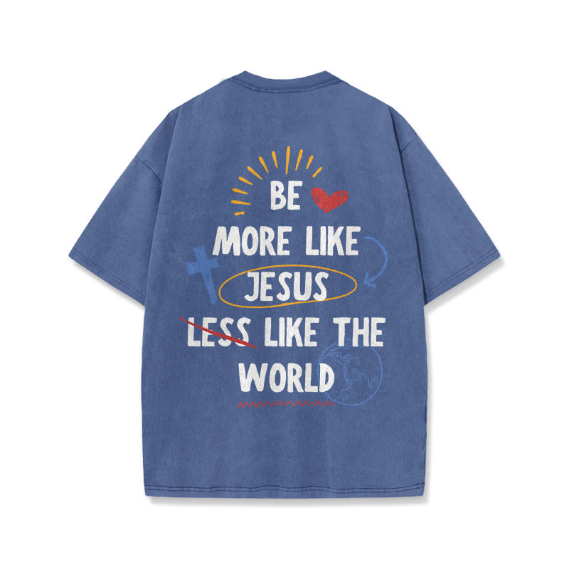 Vintage Be More Like Jesus Like The World Print Acid Washed Unisex T-shirt