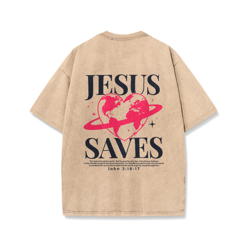 Vintage Jesus Saves Print Acid Washed Unisex T-shirt