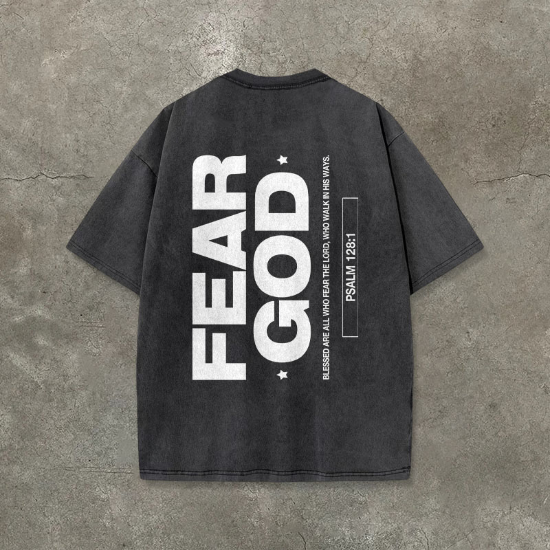 Vintage Fear God Print Acid Washed Unisex T-shirt