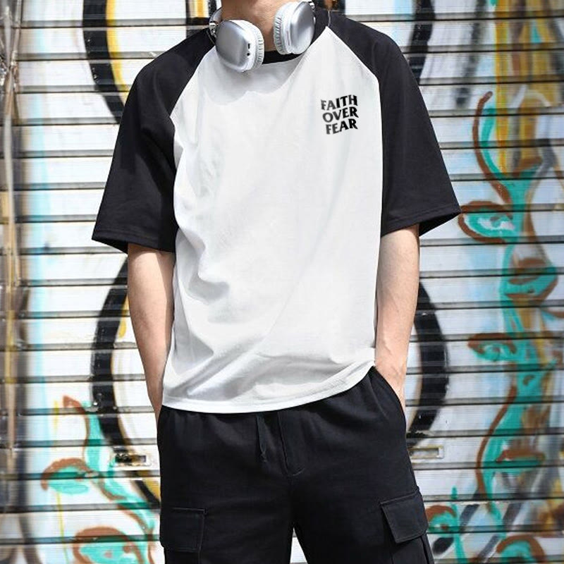 Faith Over Fear Print Raglan Sleeve T-shirt