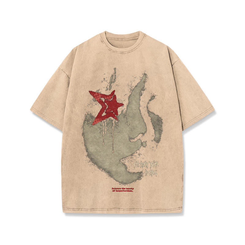 Grunge Punk Vintage Blurry Portrait Printing Washed T-shirt