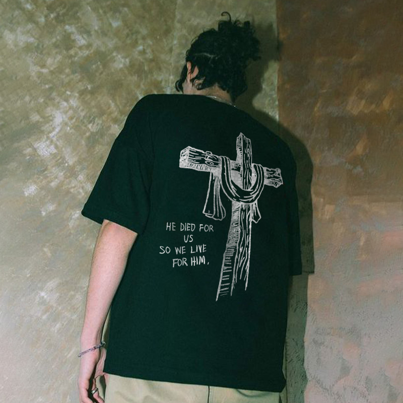 He Died For Us So We Live For Him Print T-shirt