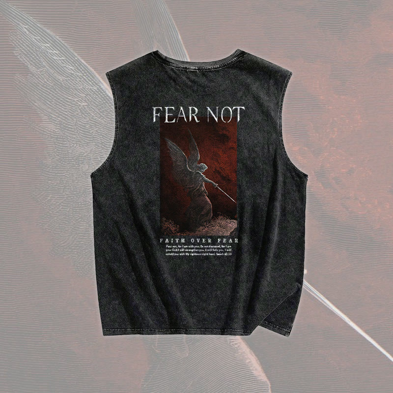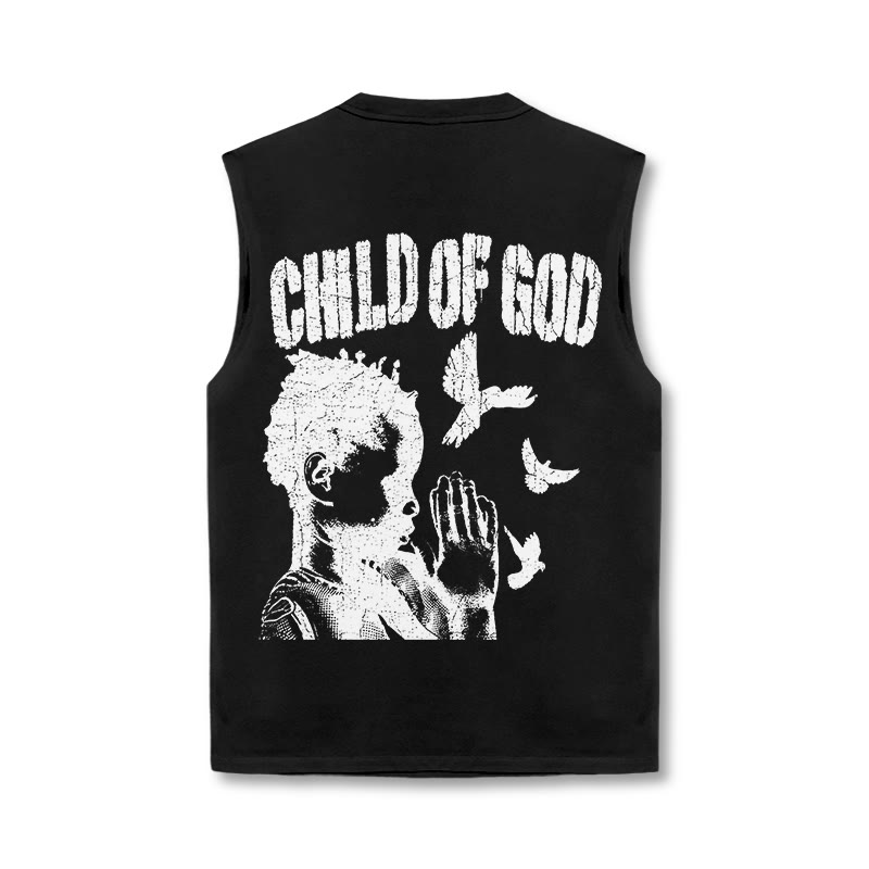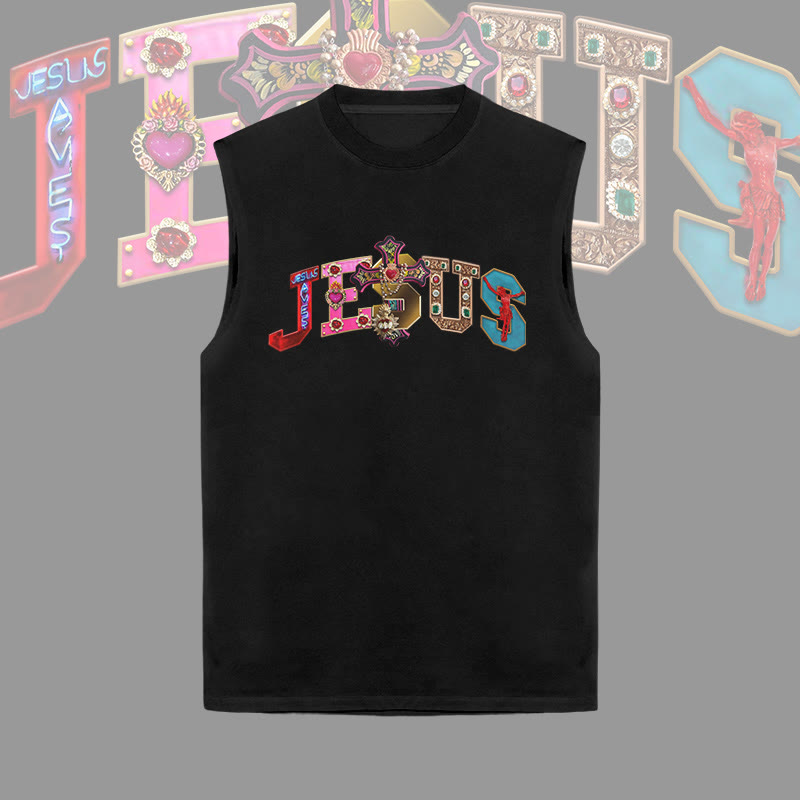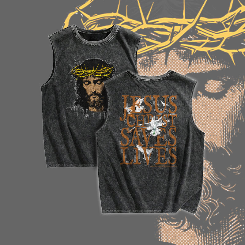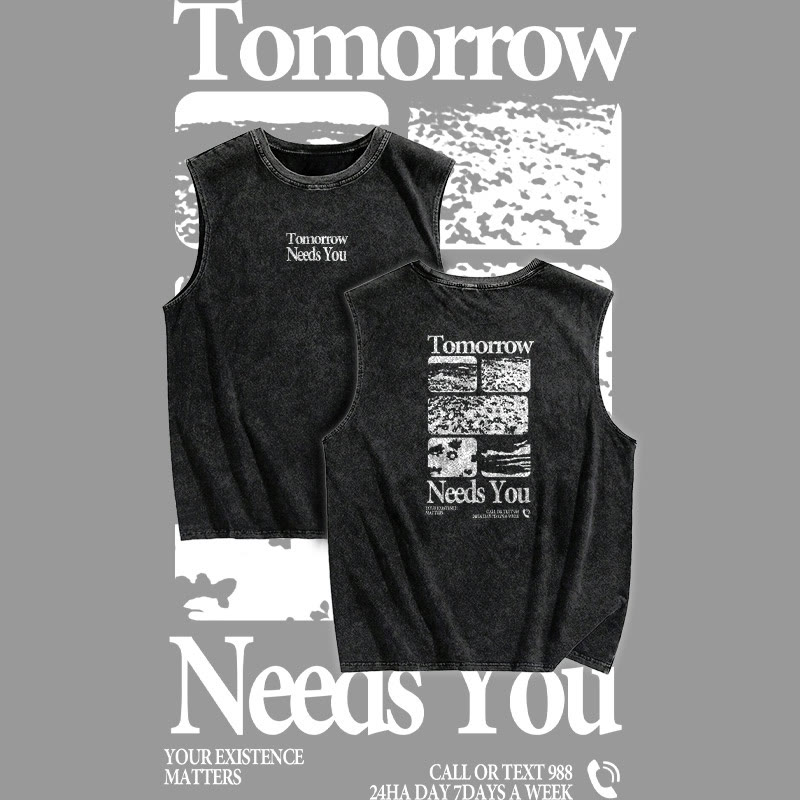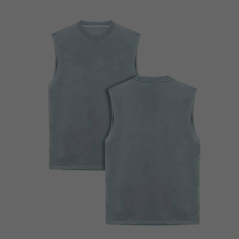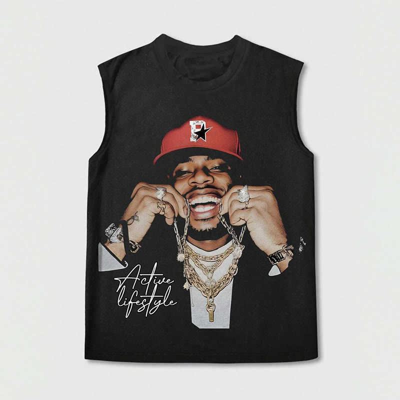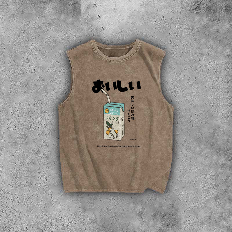 Japanese Drink Pattern Letter Printed Acid Washed Vest