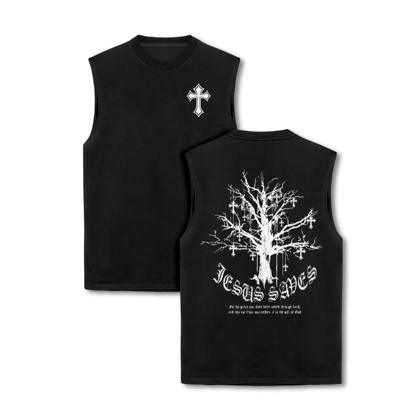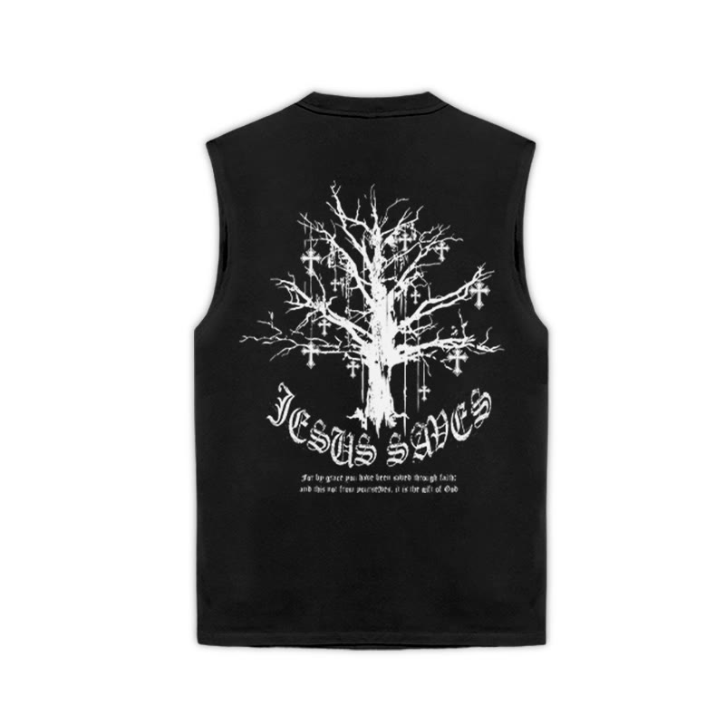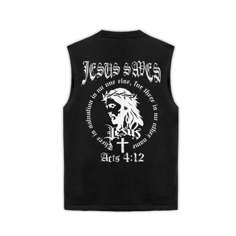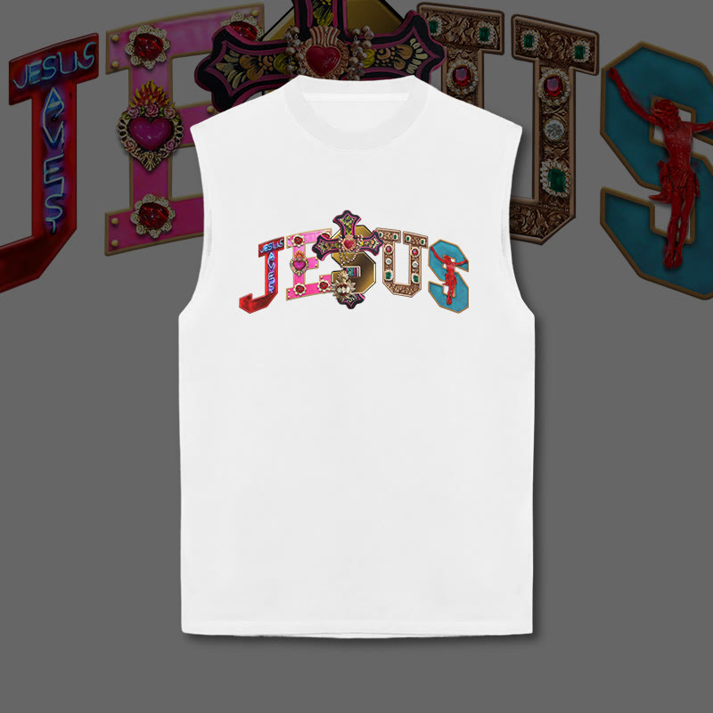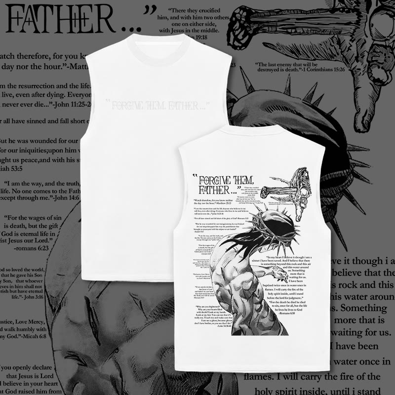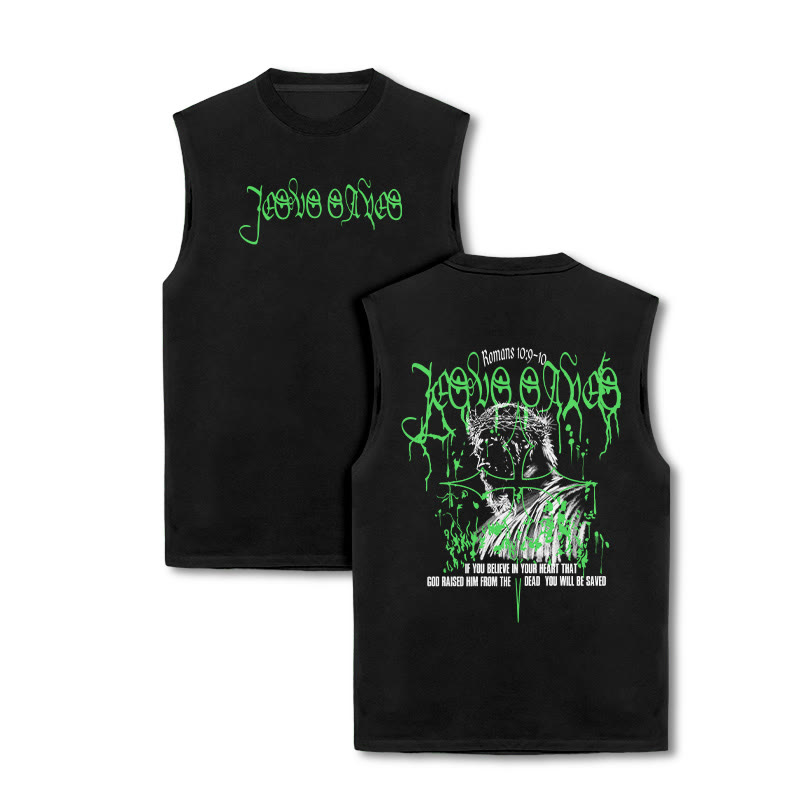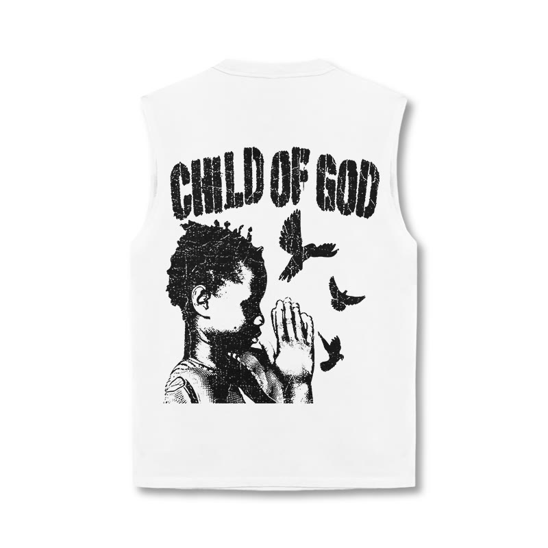 Japanese Drink Pattern Letter Printed Acid Washed Vest