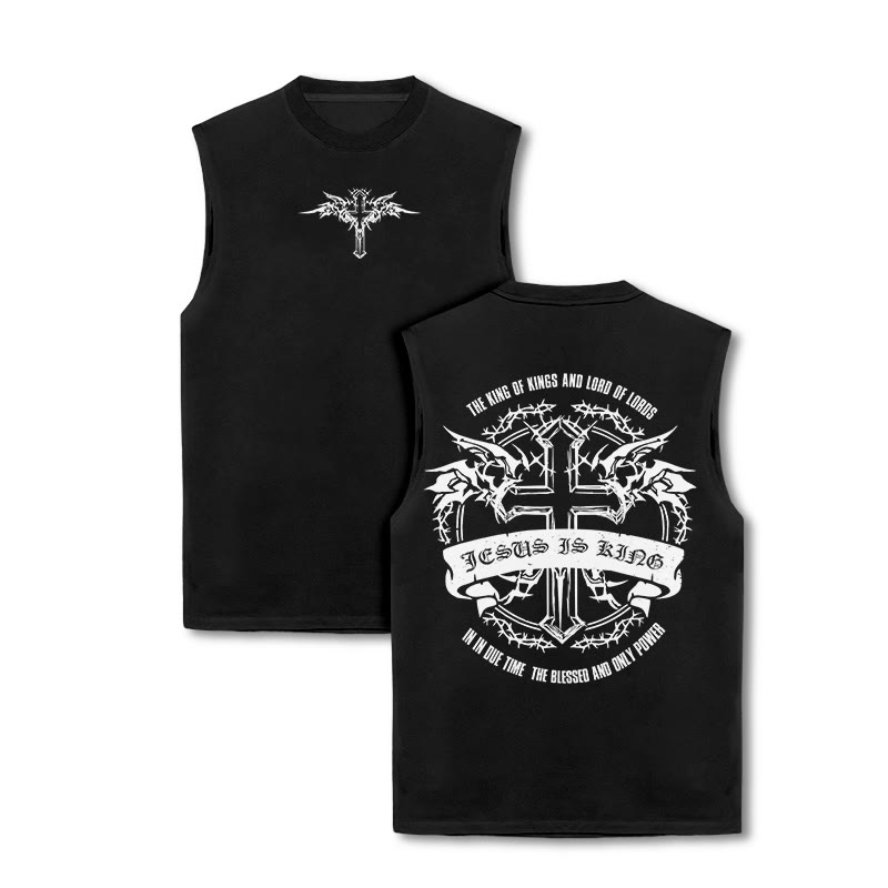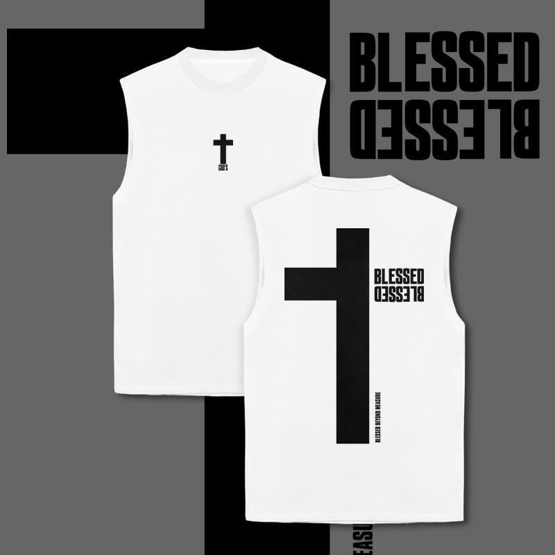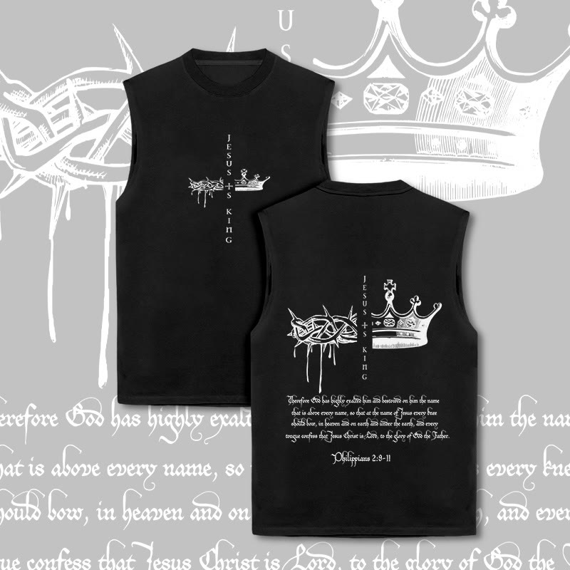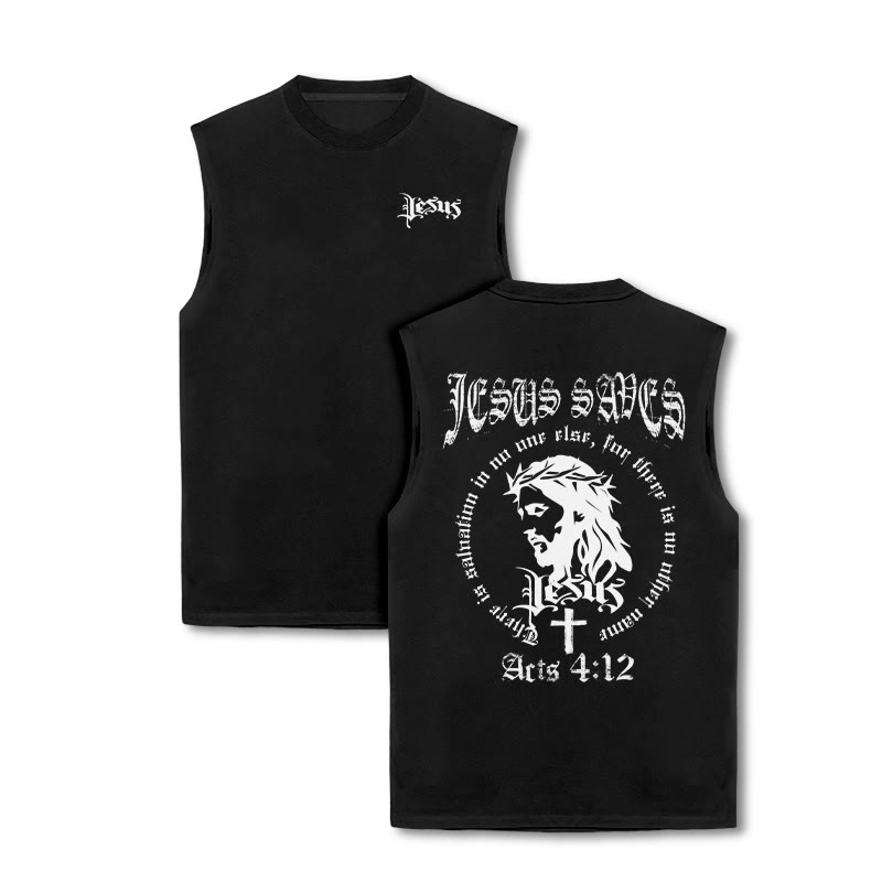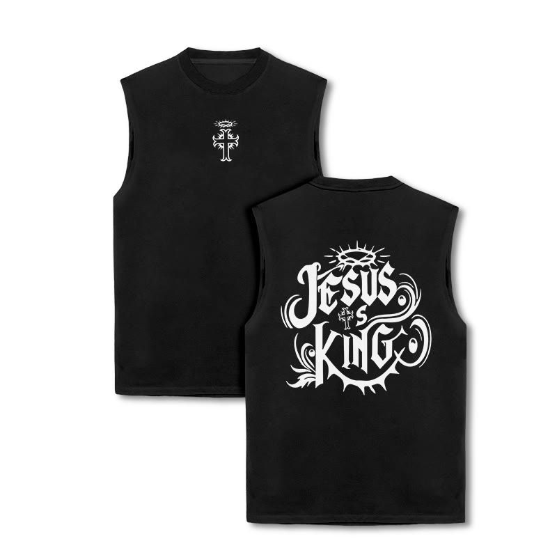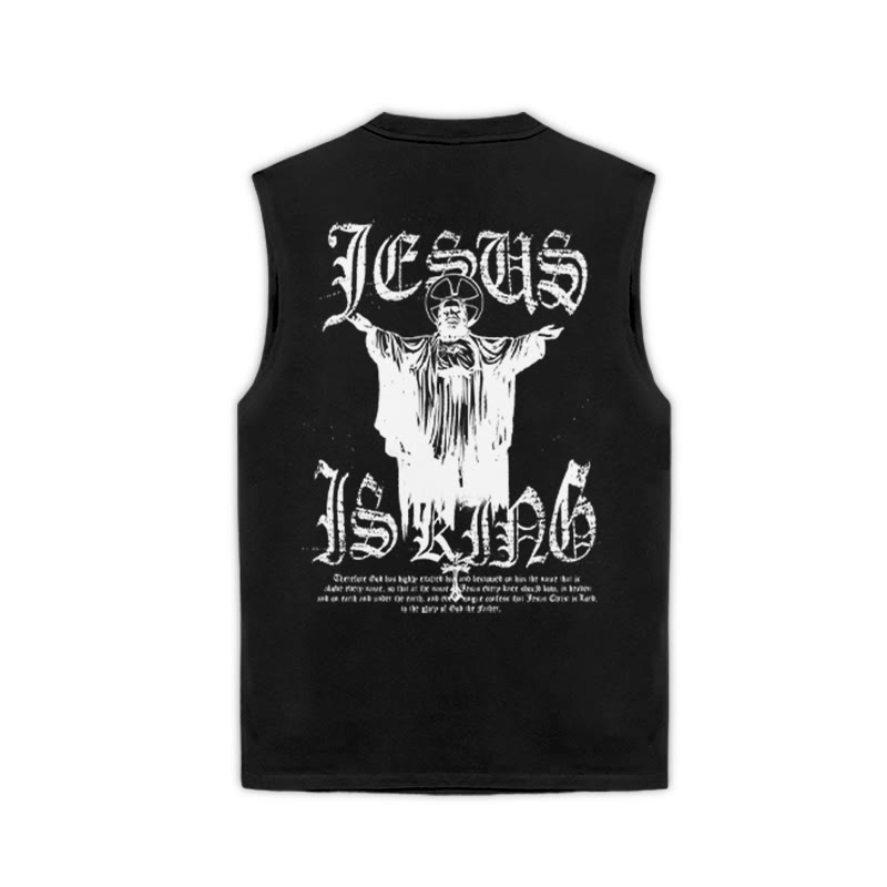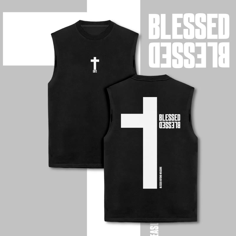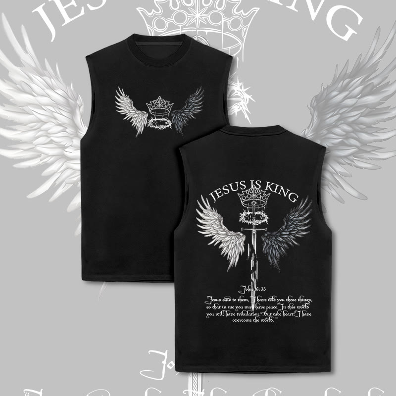 Japanese Drink Pattern Letter Printed Acid Washed Vest