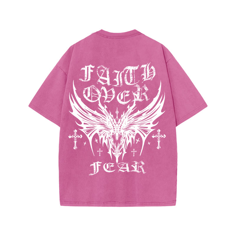 Unisex FAITH OVER FEAR Print Acid Washed T-shirt