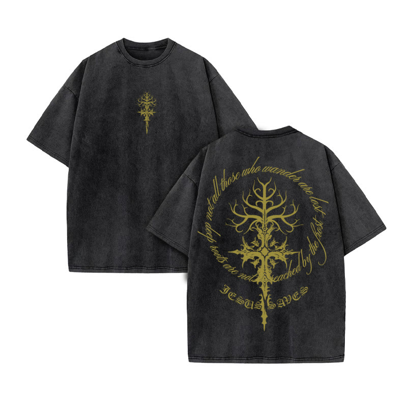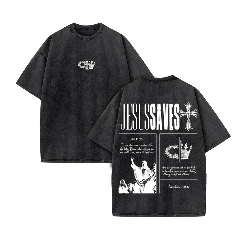 Unisex JESUS SAVES Print Acid Washed T-shirt