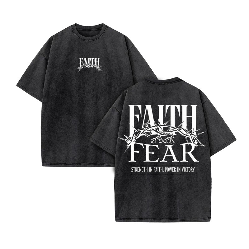 Unisex FAITH OVER FEAR Print Acid Washed T-shirt